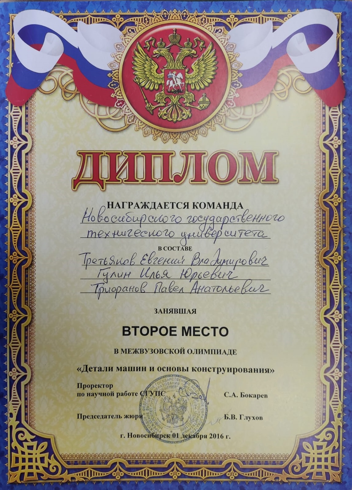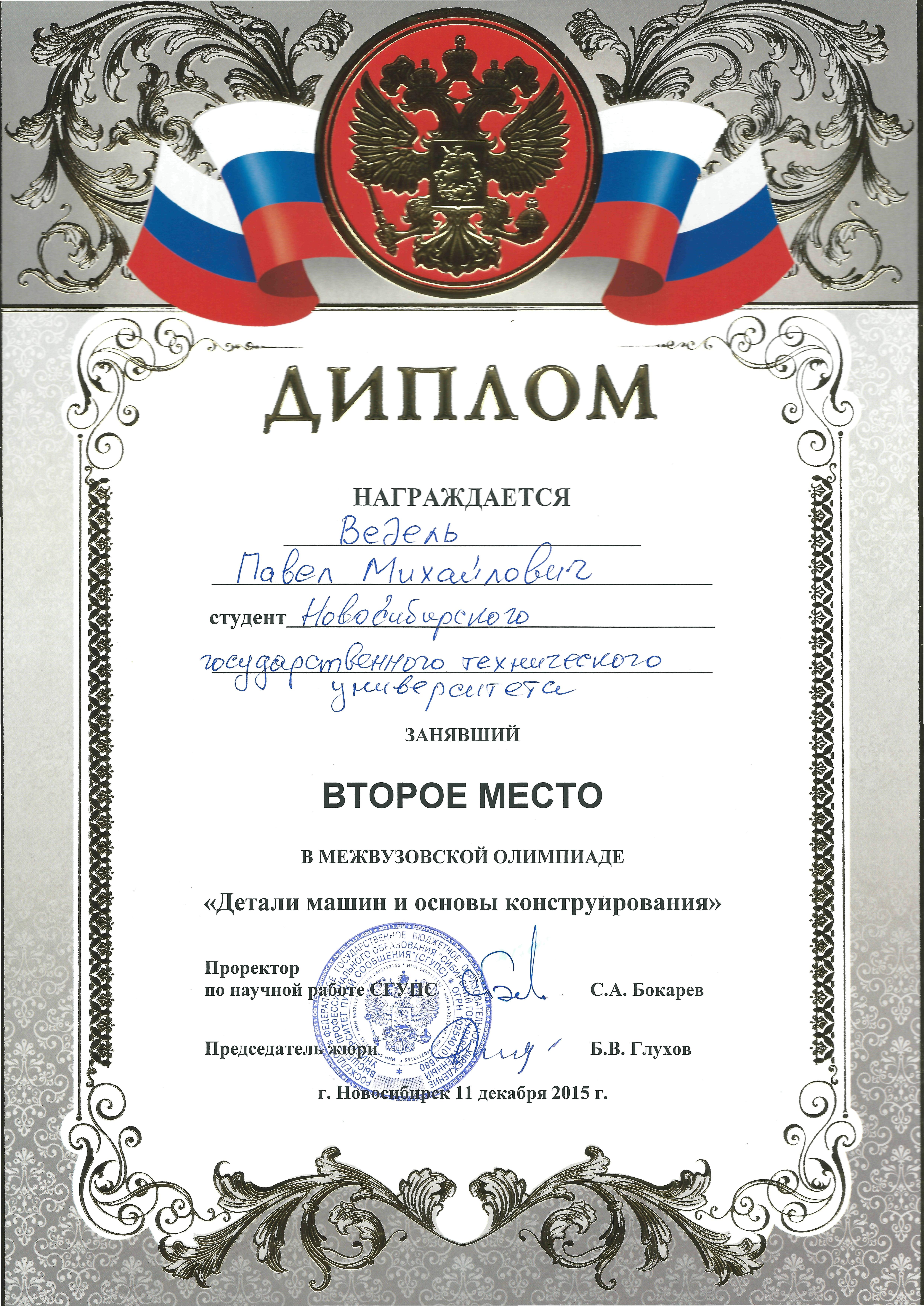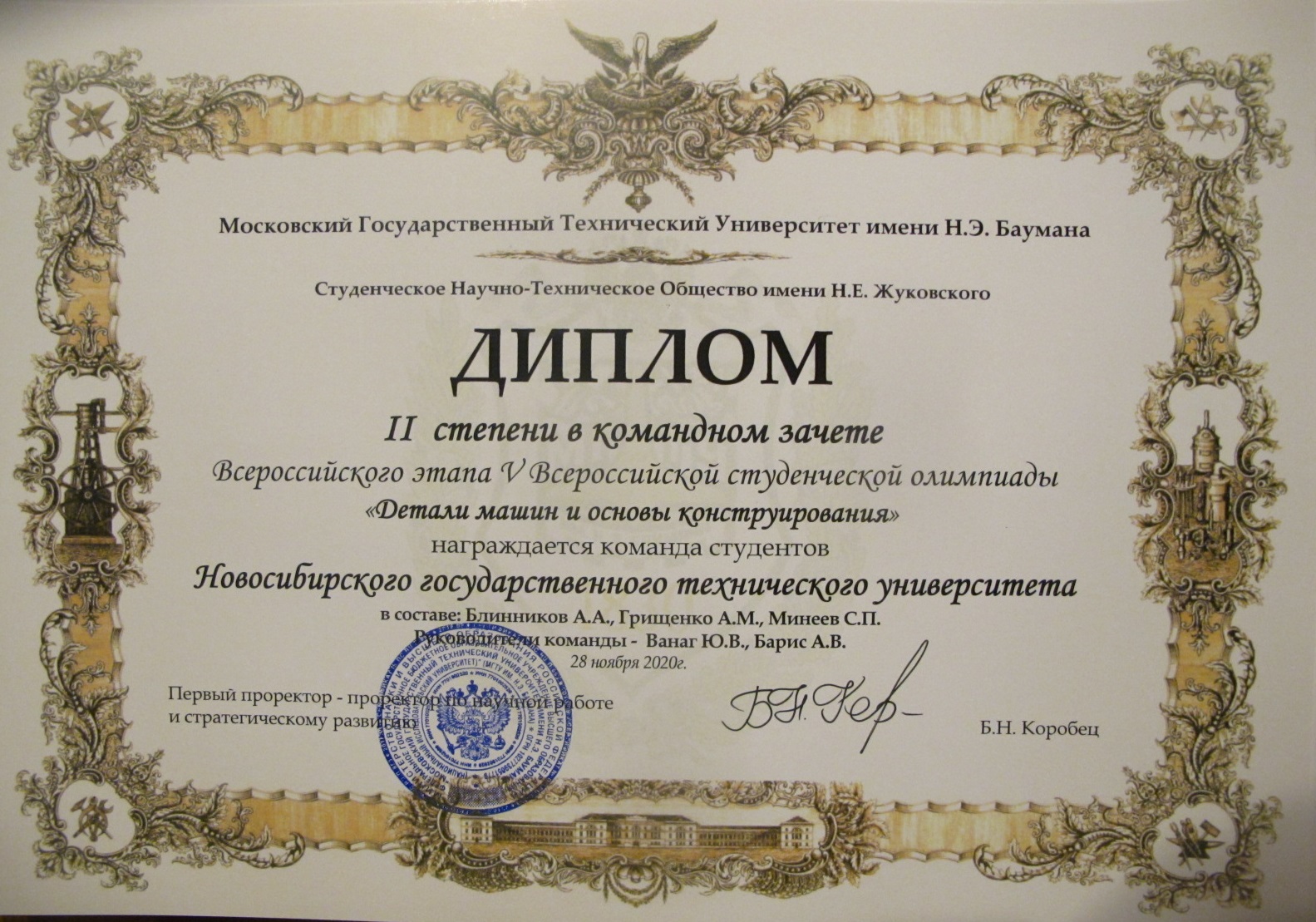8 декабря 2020 года (дистанционное участие) на городской межвузовской олимпиаде «Детали машин и основы конструирования», организованной Сибирским государственным университетом путей сообщения.