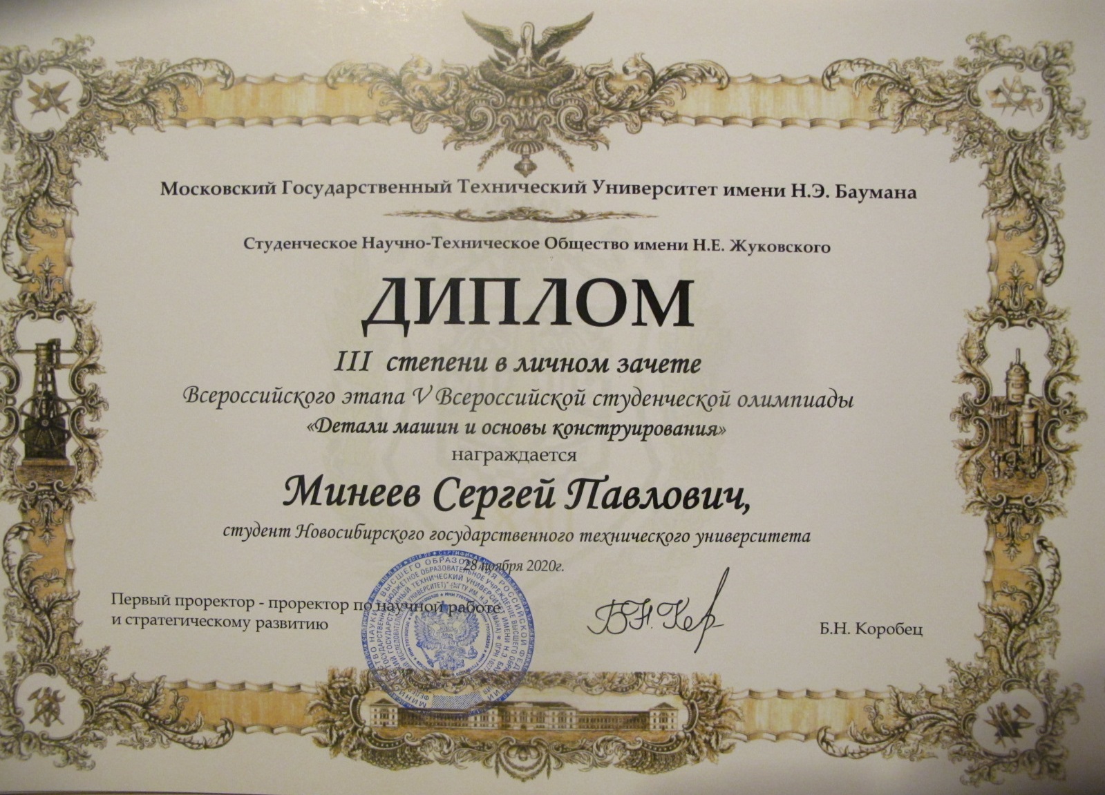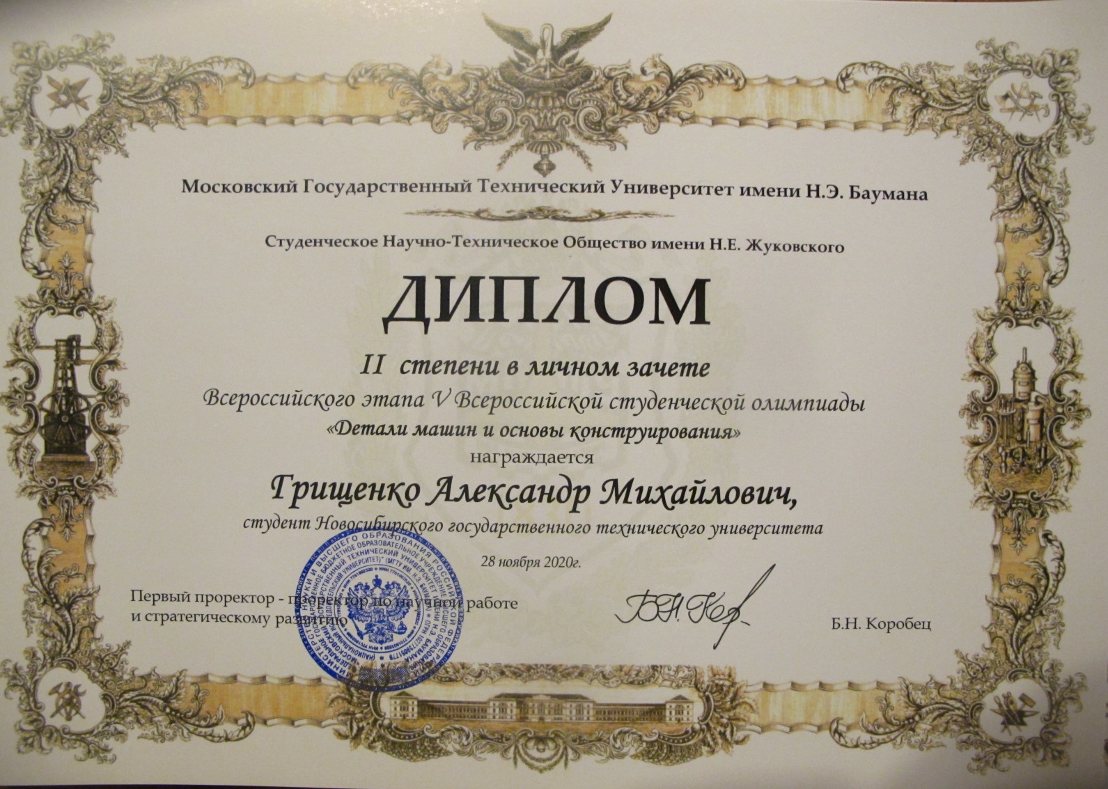 28 ноября 2020 года (Дистанционное участие). в Московском государственном техническом университете имени Н.Э. Баумана состоялся всероссийский этап