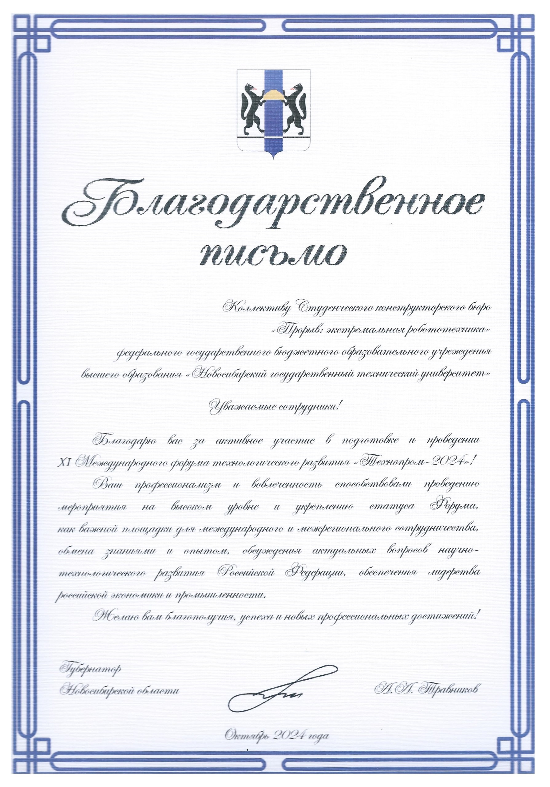 28-29.08.2024 г в НовосибирскЭкспоцентр (ул. Станционная, 104) в рамках XI Международного форума технологического развития «Технопром-2024» прошли первые за Уралом инженерные соревнования «Открытый кубок Сибири по битве мини-роботов» организованные командой СКБ «Прорыв: экстремальная робототехника» НГТУ: Руководитель А.А. Цыгулин, координаторы Ю.В. Ванаг и И.В. Петрова и наши талантливые ребята, студенты 1-4 курсов и магистранты МТФ, ФМА, РЭФ, ФЭН и ФПМИ: Гавриш Антон, Гудыма София, Кабелин Максим, Кащаев Егор, Лебедев Андрей, Моисеев Денис, Мочалов Михаил, Павлова Виолетта, Посохов Кирилл, Стужук Ева, Устименко Ярослав, Цыгулин Дмитрий, Чайко Степан, Чернов Павел.