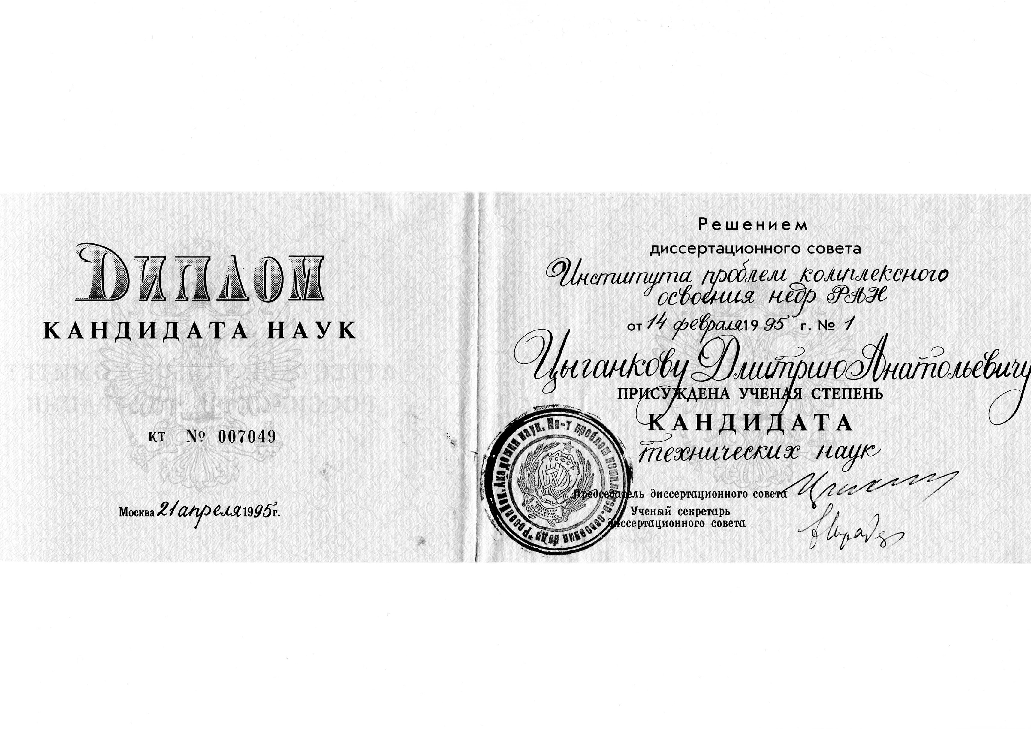 | к.т.н. | 1995 | Методы учёта качества окружающей природной среды при обосновании параметров технологического карьерного транспорта | 11.00.11 |