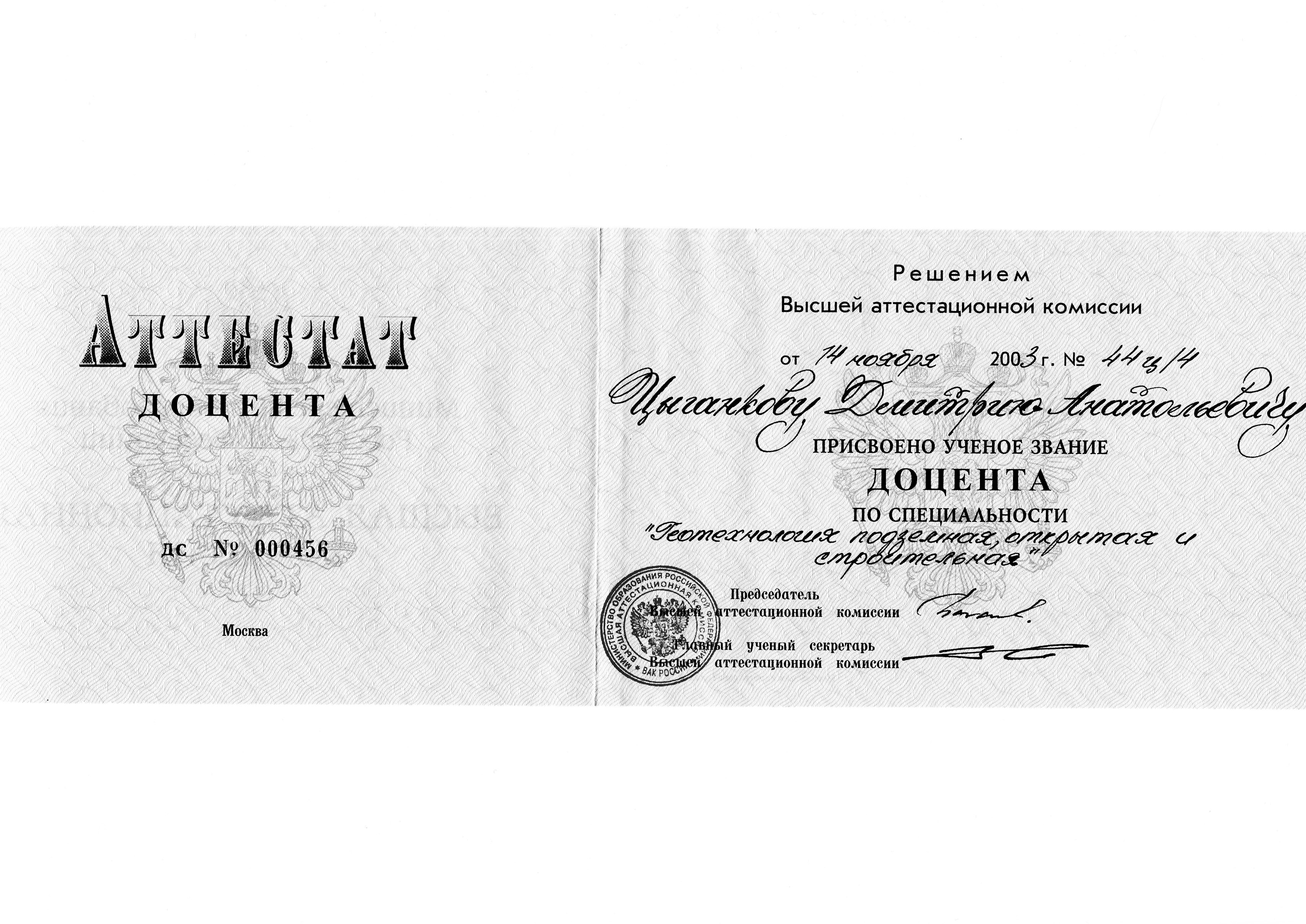 | степень | год | название работы | научная специальность |
