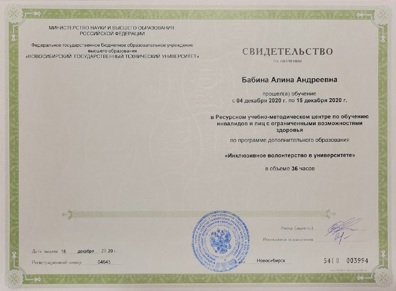 - Получение грантовой поддержки Министерства образования Новосибирской области для предоставления результатов исследования (в 2022-2023 гг. ), посвященного занятости инвалидов молодого возраста https://vk.com/wall-43002674_24546.